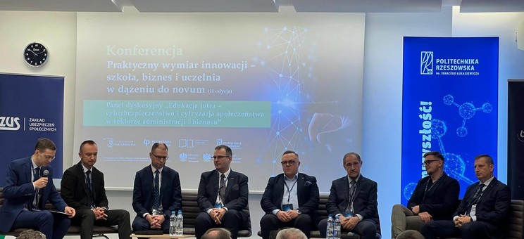 Panel „Edukacja jutra — cyberbezpieczeństwo i cyfryzacja społeczeństwa w sektorze administracji i biznesu” dotyczył kluczowych zagadnień we współczesnym cyfrowym świecie. Obecna sytuacja wymusza funkcjonowanie odpowiednio przygotowanej kadry odpowiedzialnej za politykę bezpieczeństwa w instytucji, która nie tylko na bieżąco będzie analizować aspekty bezpieczeństwa informatycznego, ale także będzie dostosowywać rozwiązania adekwatne do nowych wymagań. W trakcie panelu prelegenci odpowiadali na pytania, jakie są dzisiaj kluczowe umiejętności w zakresie cyberbezpieczeństwa i cyfryzacji, szczególnie w kontekście kształcenia przyszłych kadr dla administracji publicznej i biznesu. Istotne jest wskazanie wyzwań, przed którymi stoją przedsiębiorstwa i instytucje publiczne dotyczące zabezpieczenia danych w coraz bardziej zdigitalizowanym środowisku. Zwrócono uwagę, że zabezpieczenia cybernetyczne potrzebne są również na poziomie jednostek samorządu terytorialnego, szczególnie w województwie podkarpackim znajdującym się w pobliżu granic z Ukrainą. Istotną rolę dla przedsiębiorców odgrywają firmy oraz Zakład Ubezpieczeń Społecznych, który oferuje określone programy wzmacniania ochrony danych informacyjnych.